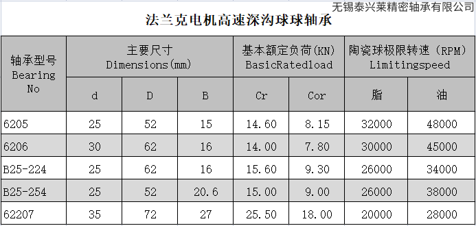 法兰克电机高速深沟球球轴承技术参数
